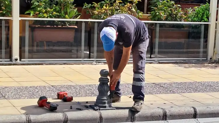 Marmaris Belediyesi'nde ekipler yaz döneminde trafik akışını güvende tutmak ve uygunsuz parkı önlemek amacıyla yapılan dubalara bakım yapıyor, kullanılamaz hale gelenleri yeniliyor.