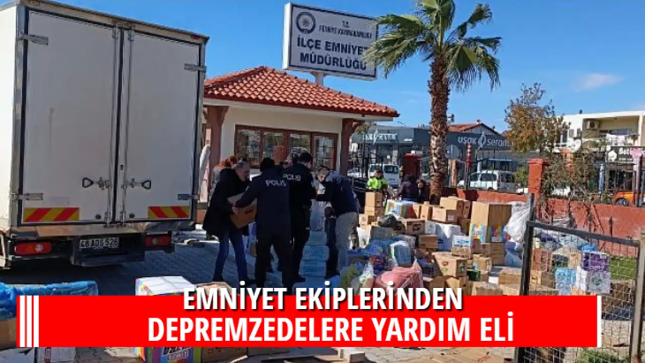Fethiye İlçe Emniyet Müdürlüğü personeli, vatandaşlarında katkılarıyla deprem bölgelerine yardım kampanyası eşliğinde depremzedelerin acil ihtiyaçlarını belirleyip yardım gönderdi. Fethiye İlçe Emniyet Müdürlüğü ve karakol ile bazı noktalarda emniyet personelinin ve vatandaşların sağladığı acil ihtiyaç ürünleri yine emniyet personeli tarafından paketlenip, temin edilen araçlarla deprem bölgesine uğurlandı.