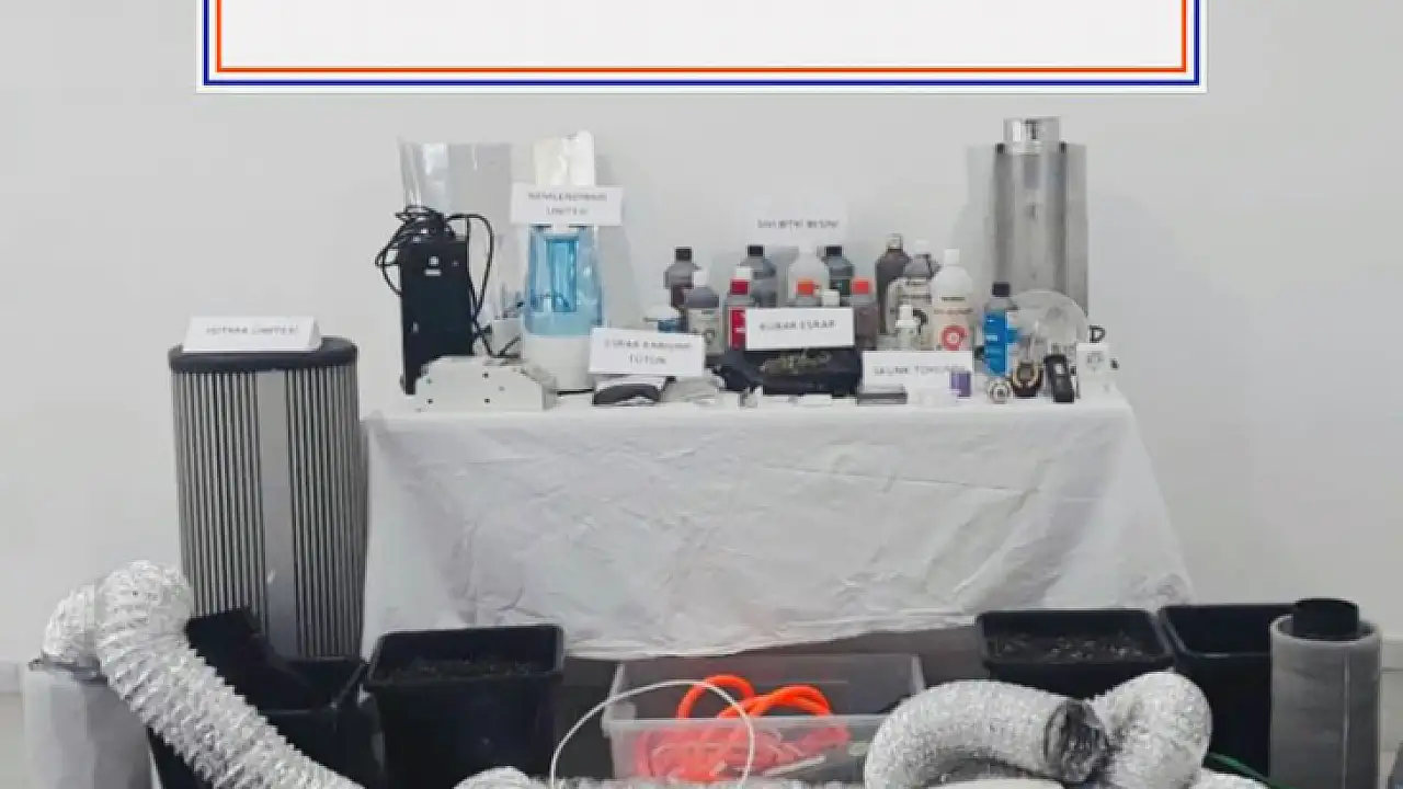 Yapılan aramada; çok miktarda kubar esrar, skunk türü Hint keneviri tohumu, kıyılmış tütün ile vantilatör, 2 adet havalandırma vantilatörü, 3 adet özel led aydınlatma paneli, 3 adet ısıölçer, 5 litre sıvı bitki besini, hava nemlendirme cihazı, 3 adet özel aydınlatma ampulü, 2 adet özel alüminyum havalandırma cihazı, 4 adet içi toprak dolu saksı ve cep telefonu ele geçirildi.