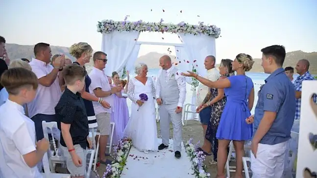 Pandemi nedeniyle ülkemizi güvenli bulan ve düğün organizasyon fiyatı olarak Türkiye'yi tercih eden yabancı çiftlerin sayısında her geçen gün artış yaşanıyor. Muğla'nın Marmaris ilçesi yabancı turistlerin en özel günlerini kutlamak için de gözdesi olurken, başta İngilizler olmak üzere yabancı çiftler evlenmek için Marmaris'i tercih etmeye başladı.