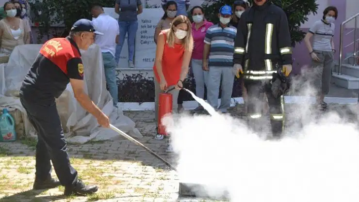 Muğla Sıtkı Koçman Üniversitesi Fethiye Ali Sıtkı Mefharet Koçman Meslek Yüksekokulu Müdürü Prof. Dr. Fahri Yiğit, “Afetlerde keşke dememek, özellikle yangınlarda bilinçli olmak çok önemli… Can ve mal kaybının geri dönüşü yok. Yangınların büyümeden önlem alınabilmesi için insanların ne yapması gerektiği konusunda eğitimli olması gerekir. Bu konuda üniversitemiz ve rektörlüğümüz gerekli çalışmalar yaptı. Tüm personelimize online olarak eğitimler verdi. Ancak bunun bir eksik yönü vardı. Bu eksikte uygulamalı tatbikattı. Sağ olsunlar Fethiye İtfaiye Grup Amirliğine müracaat ettik. Kendileri de seve seve bu tatbikatı yapacaklarını söylediler. Tüm personelimizin katılımıyla güzel bir tatbikat gerçekleştirdik. Yangına ilk müdahale hakkında temel bilgiler öğrenildi. Bu tatbikat sadece kamu kurumları için değil, evde çıkabilecek olası yangınlarda ilk müdahale içinde çok önemli. Bütün personelimiz yangın eğitimini almış oldu” diye konuştu.