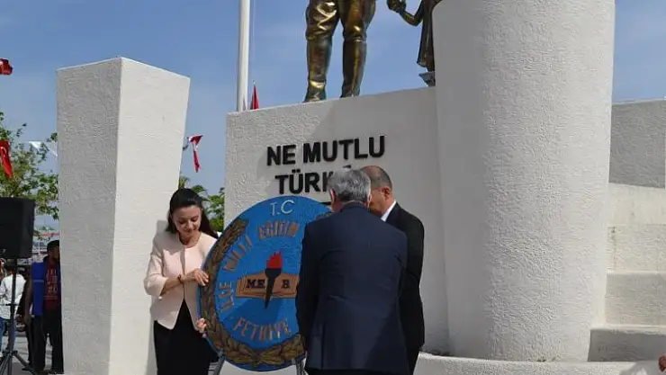 Törende Fethiye İlçe Milli Eğitim Müdürü Faruk Kaya Atatürk Anıtı’na Milli Eğitim Müdürlüğü çelengini sundu. Saygı Duruşu ve İstiklal Marşı’nın okunması ile devam eden törende öğrenciler şiirlerini okudu.