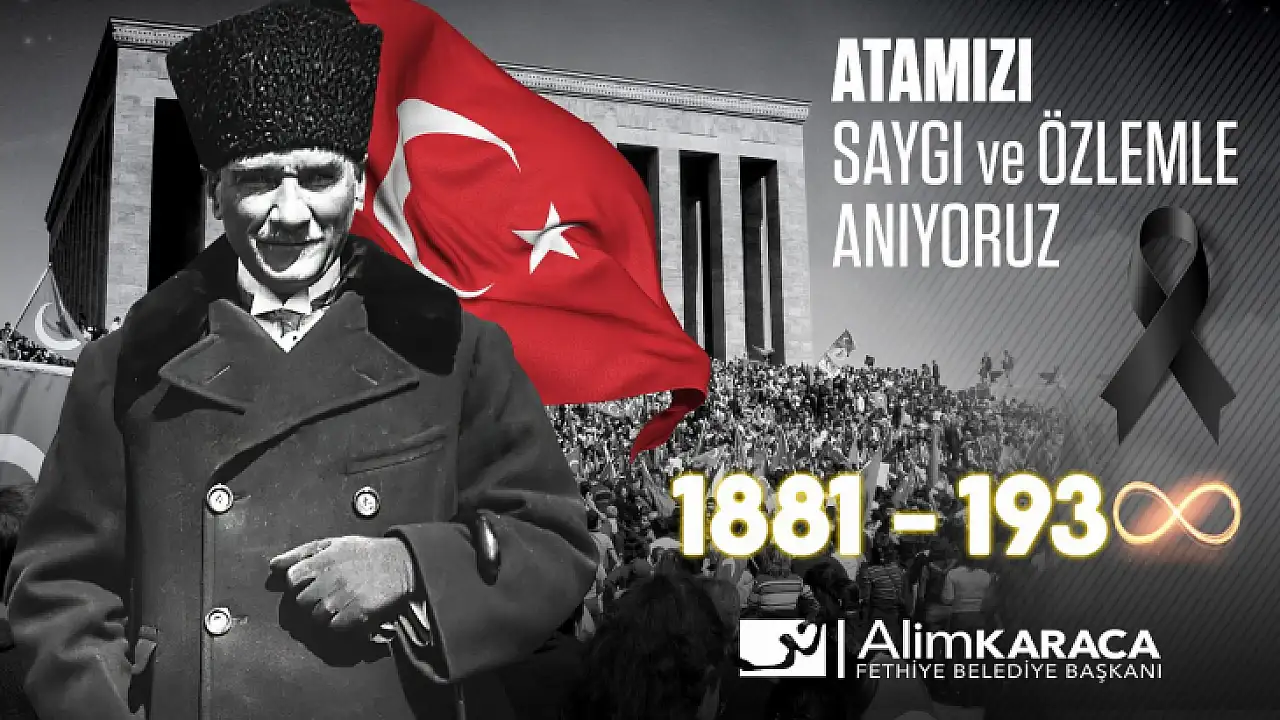Fethiye Belediye Başkanı Alim Karaca, ulu önder Mustafa Kemal Atatürk'ün vefatının 84.yıldönümü münasebetiyle bir mesaj yayımladı.