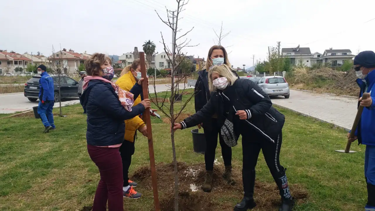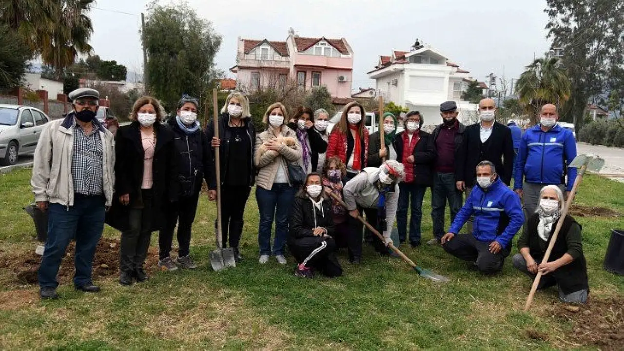Fethiye Belediyesi Park ve Bahçeler Müdürü Durmuş Sazcı, CHP Fethiye Kadın Kolları Başkanı Gülümser Oymak ve kadın kolları üyelerinin katıldığı ağaç dikiminde 14 ağacın dikimi yapıldı.