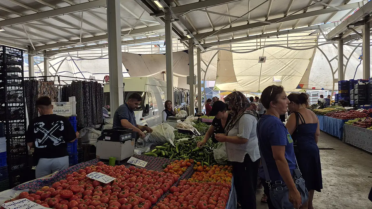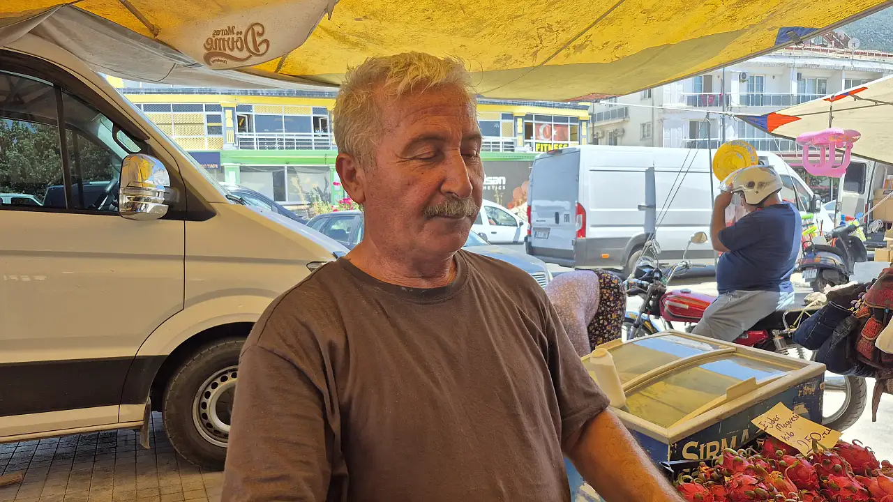 Fethiye'de kurulan Cumartesi Pazarı'nda, aşırı sıcaklar hem esnafı hem de vatandaşları etkiliyor. Sıcaklığın 35 dereceyi bulduğu öğle saatlerinde tezgâh başında çalışan pazarcı esnafı, gölgelik altındaki sıcağa rağmen satış yapmaya devam ediyor.