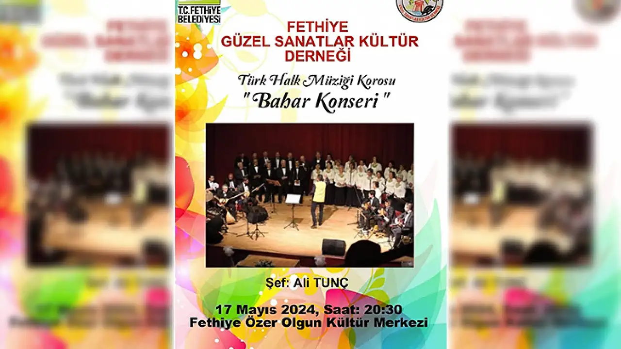 Fethiye Güzel Sanatlar Kültür Derneği tarafından Türk Halk Müziği Korosu ile Ali Tunç’un şefliğinde Bahar Konseri düzenlenecek. Fethiye Belediyesi ve Fethiye Güzel Sanatlar Kültür Derneği tarafından düzenlenecek olan Bahar Konseri bu akşam saat 20.30’da Fethiye Özer Olgun Kültür Merkezi’nde olacak. Yapılan duyuruda “Tüm Fethiyeli vatandaşlarımızı bu akşam olacak olan konsere bekliyoruz” dendi.