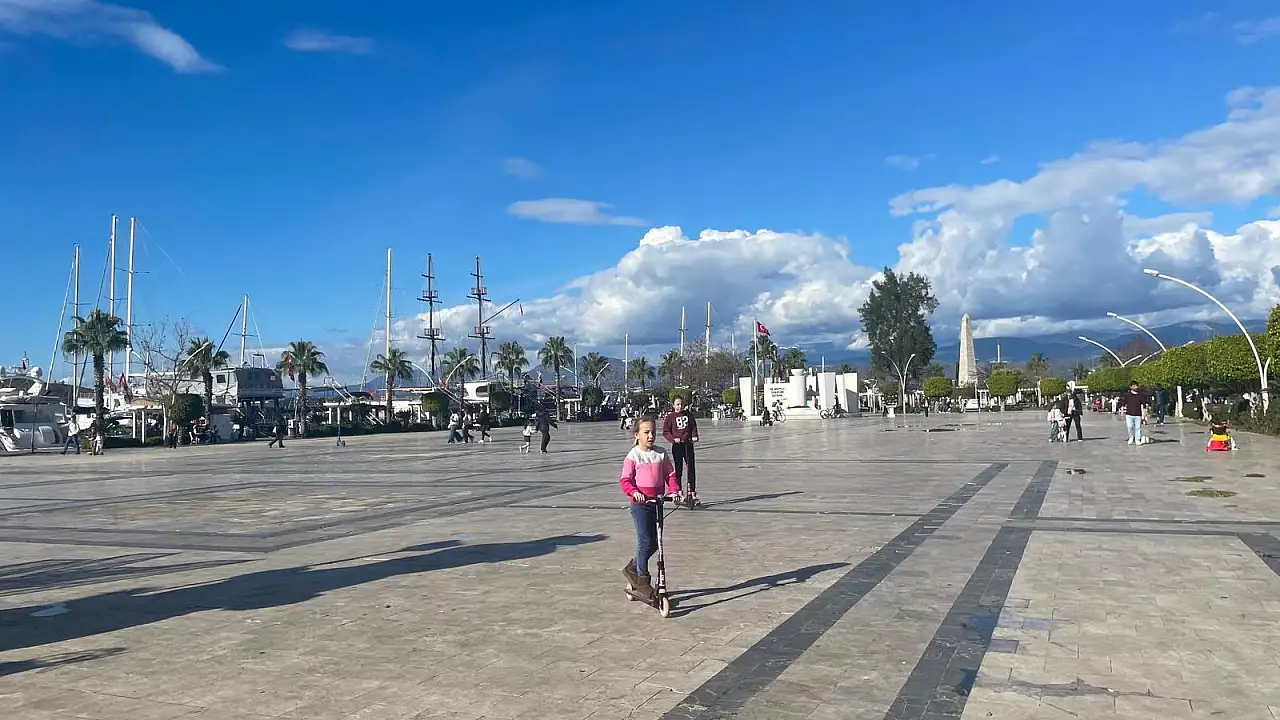 Fırtına ve yağışlı günlerin ardından Fethiye'de güneşli havayı fırsat bilen vatandaşlar sahil kenarlarına ve meydanlara akın etti.
