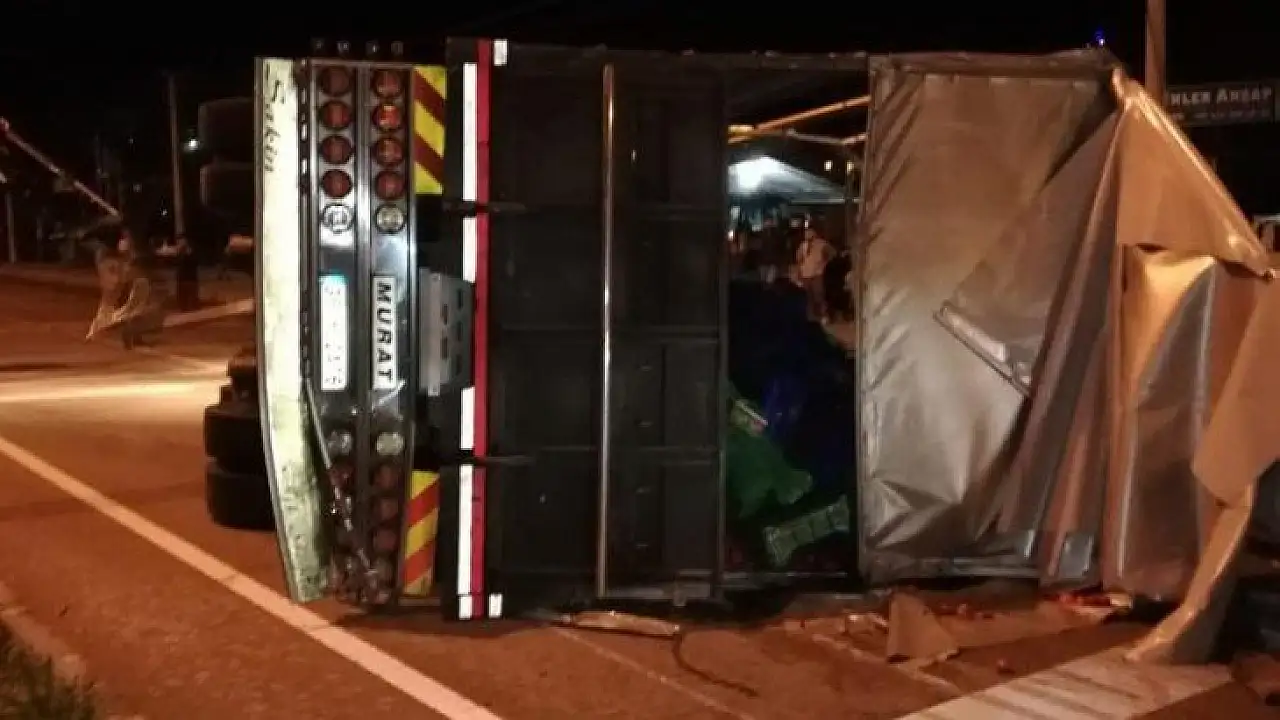 Kaza sonrası yola savrulan kasalar ve kamyon nedeniyle kara yolu kısmen ulaşıma kapandı.