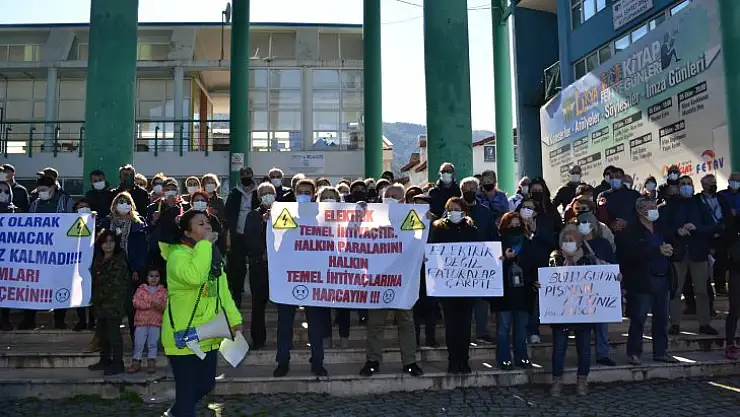 Yapılan protesto eyleminde Fethiye kent Konseyi Kadın Meclisi Başkanı Selda Salkaya basın açıklaması metnini okudu. Yapılan basın açıklamasında Selda Salkaya “Bugün burada toplanmamızın nedeni, hepinizin bildiği gibi, fahiş oranda zamlı gelen elektrik faturalarını boykot ve zamların geri çekilmesini talep etmektedir. Biz yetişkinleri düşünmüyorsanız, çocuklarımızı düşünün. Evlatlarımızın soğuk kış koşullarında, buz gibi sınıflarda eğitim almak zorunda bırakılmasını kabul etmiyoruz. Hastalarımızın, yaşlılarımızın, bebeklerimizin, soğuk evlerde, yorgan altında titrediğini görmek istemiyoruz. Asgari ücretle geçinen bir ailenin, neredeyse maaşının, yarısından fazlasını elektrik faturası olarak Aydem’e vermesini istemiyoruz. Üç kuruş emekli maaşıyla geçinmeye çalışan abilerimizin, ablalarımızın, taşınamaz ağırlıkta ki bu yükü, sırtlanmak zorunda bırakılmasını kabul etmiyoruz. Isınmak, aydınlanmak, yemek pişirmek ve kavurucu sıcakta serinlemek gibi insani ihtiyaçlarımızın, elimizden alınmasını kabul etmiyoruz. Kaçak elektrik kullananların yükünü ve vebalini, dürüst insanlar olarak taşımak istemiyoruz. Faturalarımızda ki astronomik miktarda ki KDV, okuma bedelinin kaldırılmasını ve ivedilikle zamların geri çekilmesini talep ediyoruz. Kademeli elektrik tüketimi saçmalığına bir son verilmesini istiyoruz. Tarafımıza tebliğ edilmeyen borçlara, bilgimiz dışında icra gönderilmesini kabul etmiyoruz. Devletimizin biz Fethiyelilere sunmadığı doğal gaz hizmeti nedeniyle, çoğumuz ısınmada elektrikten istifade ederken, gelen korkunç faturaların stresine katlanmak istemiyoruz. Gittikçe artan zamlar, yüksek konut ve işyeri kiraları ile boğuşurken, elektriğe de yapılan ödememiz mümkün görünmeyen zamları kabul etmiyoruz.