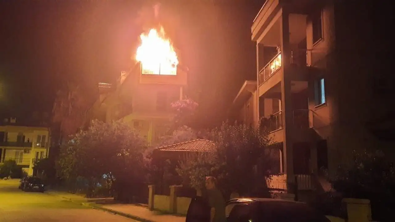 Fethiye'de bir evin çatı katı patlama sonrası alevlere teslim oldu. Patlama sesiyle tüm mahalleli sokaklara döküldü. Gece saatlerinde 3 katlı bir evin çatı katında çıkan yangın, itfaiye ekiplerinin müdahalesi ile söndürüldü. Çatı katı kullanılamaz hale geldi.
