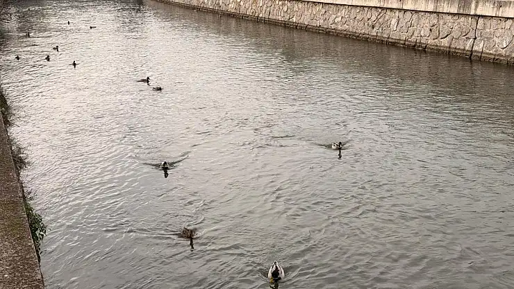 Fethiye'de kanal boyunca suyun tadını çıkaran ördekler, kış günlerinde doğayla iç içe keyifli görüntüler oluşturdu. Kanal üzerinde gruplar halinde yüzen ördekler, zaman zaman suya dalarak beslenirken, çevrede yürüyüş yapan vatandaşların ilgisini çekti.