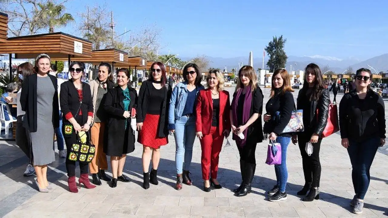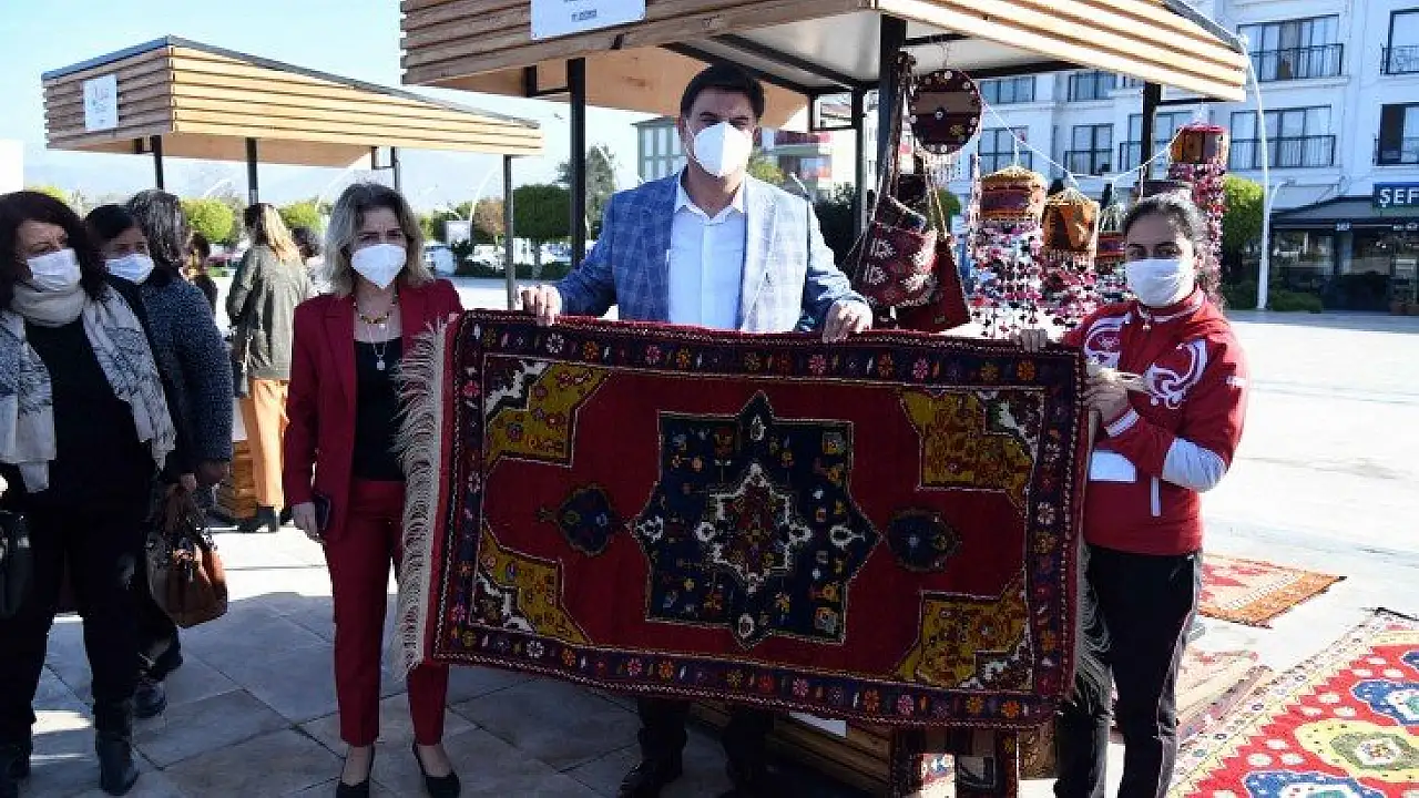Gıda dışı ürünlerin satışına imkan sağlayan Likya Kadın Emeği Pazarı, Beşkaza Meydanı’nda pandemi tedbirleri alınarak açıldı. İki gün açık kalacak standlarda, Fethiye’nin değişik mahallelerinden gelen kadın üreticiler, kendi yaptıkları ürünleri görücüye çıkardı. Fethiye Belediye Başkanı Alim Karaca, eşi ve aynı zamanda S.S. Likya Fethiye Kadın Girişimi, Üretim, İşletme ve Kalkınma Kooperatifi kurucusu Çiğdem Karaca ile birlikte standları tek tek gezdi. Kadın üreticilerle birebir sohbet ederek sergiledikleri ürünler hakkında bilgiler alan Karaca çifti, hatıra fotoğrafı çektirmek isteyen kooperatif üyelerini ve kadın üreticileri de kırmadı.