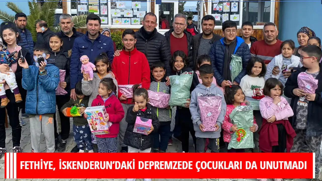 Fethiye Kaymakamlığı'nın koordinasyonunda FETAV (Fethiye Turizm Tanıtım Kültür Çevre ve Eğitim Vakfı) gönüllülerinin aracılığı ile kente gönderilen oyuncaklar, İskenderun'a geçici görevlendirilme ile giden Cumhuriyet Başsavcısı Günşafak Karartı ile depremzede çocuklara ulaştırıldı