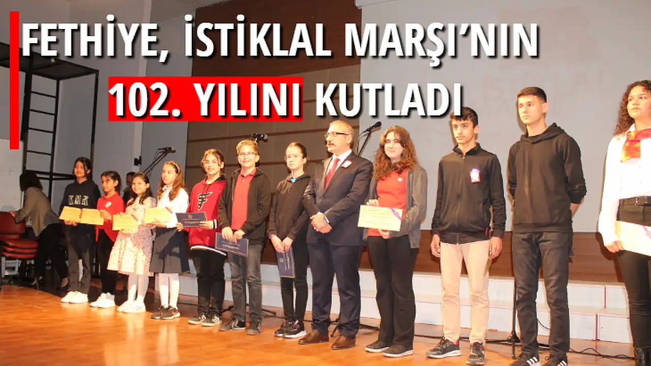 İstiklal Marşı'nın 12 Mart 1921'de Türkiye Büyük Millet Meclisi tarafından kabul edilişinin 102. Yıldönümü nedeniyle, Fethiye Şehit Sümer Deniz Kız Anadolu Hatip Lisesi Konferans Salonu'nda bir anma töreni düzenlendi