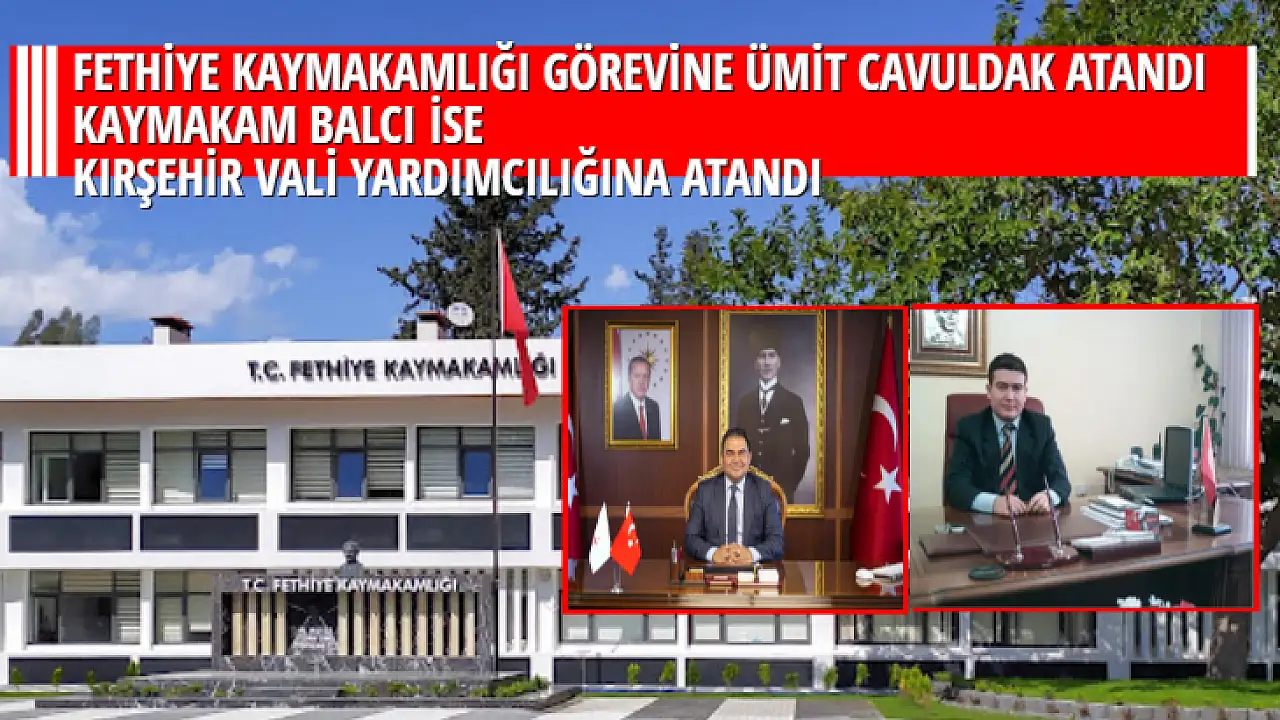 Fethiye Kaymakamı Alper Balcı'nın Kırşehir Vali Yardımcılığı'na atanmasının ardından Fethiye Kaymakamlığı görevine İzmir Adnan Menderes Hava Limanı Hudut Mülki İdare Amiri Ümit Cavuldak'ın vekâleten atandığı öğrenildi.