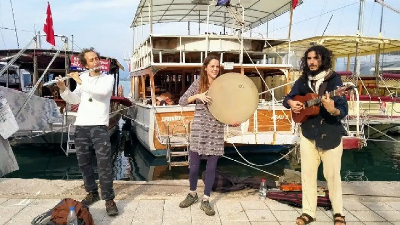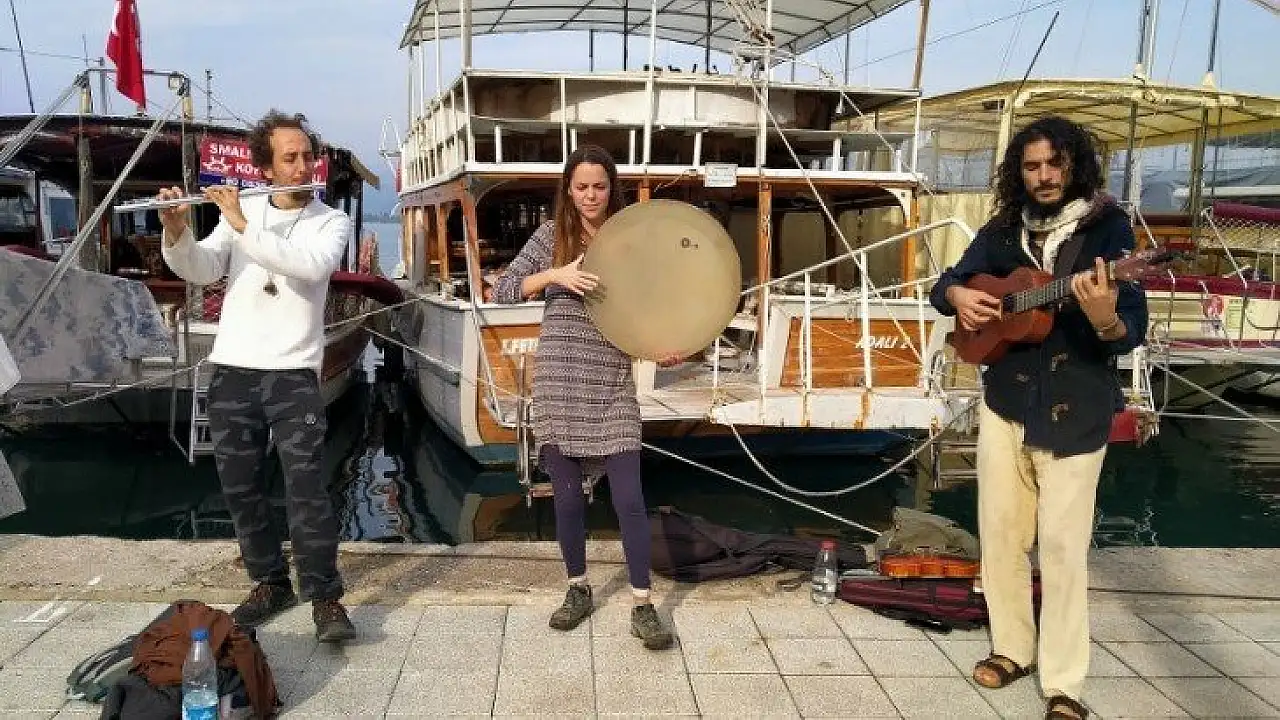 Fethiye kordonunu adeta sahneye dönüştüren ve bizleri farklı tarzlarda müziklerle buluşturup günümüze keyif katan sokak müzisyenleri, gelip geçen vatandaşları eğlendiriyor. Ege Kabalak'ın Fethiye'de tanıştığı İspanyol ve Arjantinli müzisyenler ile sokak müziği yapması, ilgiyle karşılanıyor.