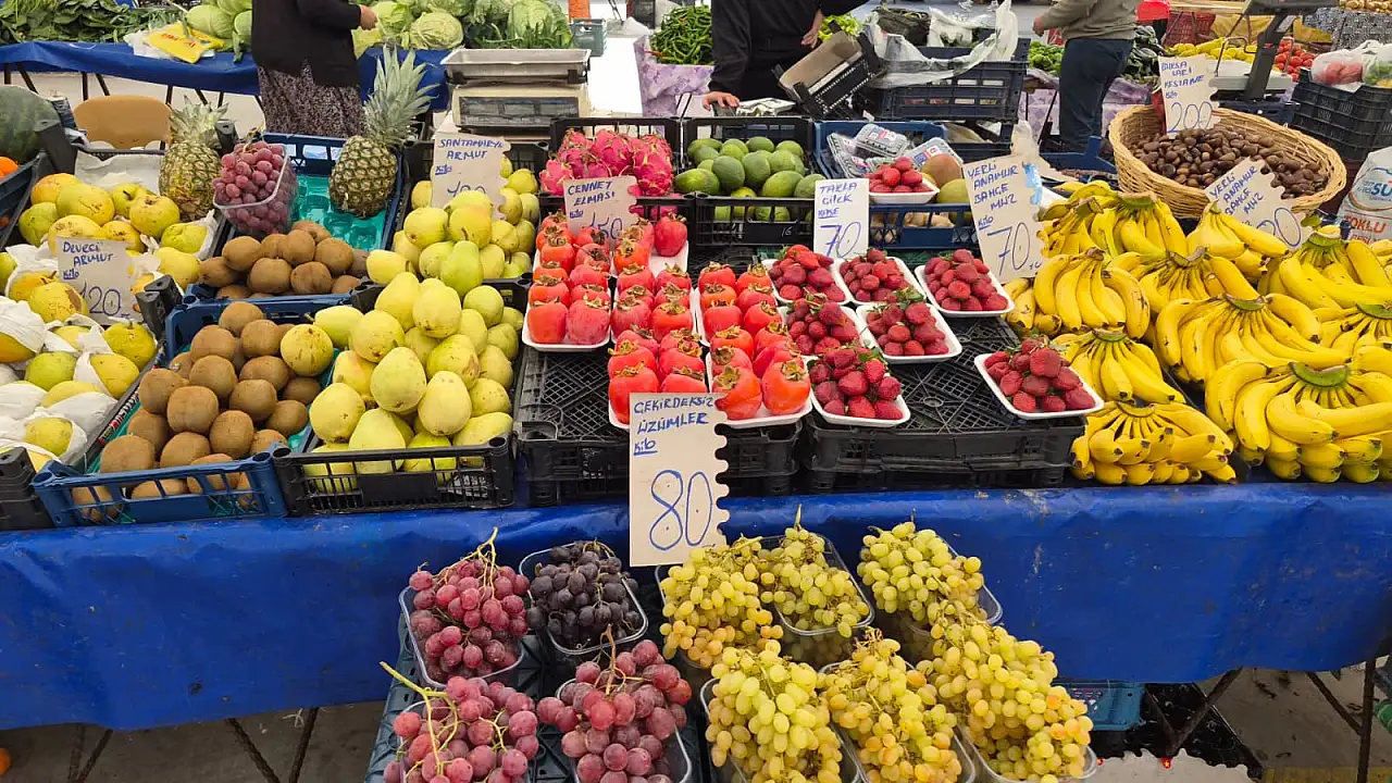 Fethiye Patlangıç Mahallesi'nde kurulan Perşembe Pazarı'nda tezgahlar sabahın ilk ışıklarıyla açıldı. Rengarenk meyveler alıcılarını beklerken en uygun fiyatlı meyve 35 TL ile portakal, 40 TL ile mandalina ve greyfurt oldu.