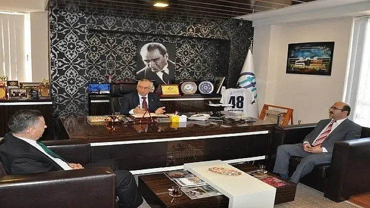 Fethiye Devlet Hastanesi Başhekimi Uz.Dr.Yavuz Okulu ile İdari ve Mali İşler Müdürü Süleyman Can, Fethiye Ticaret ve Sanayi Odası Yönetim Kurulu Başkanı Akif Arıcan'ı ziyaret etti.