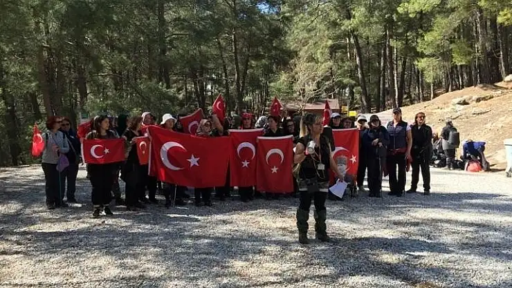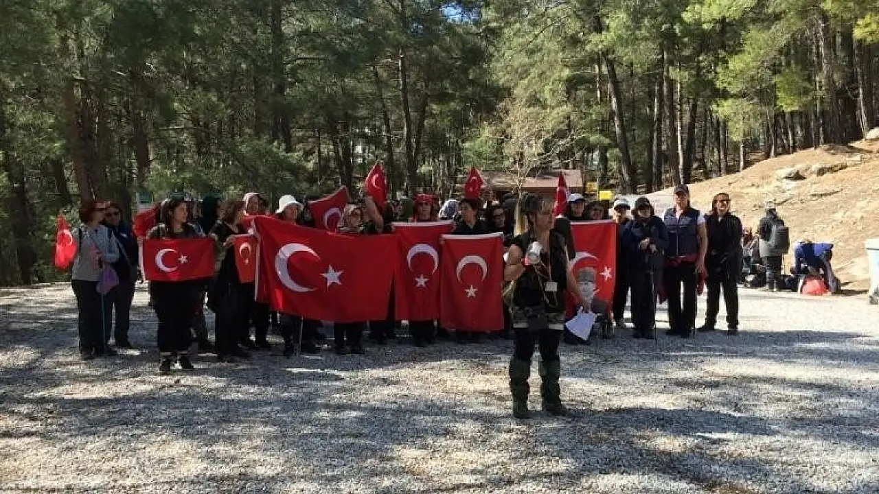 Fethiye’de sadece kadınlardan oluşan yürüyüş grubu 87 katılımcısı ile İdlib şehitlerimizi andı. Fethiye’nin Yeşil Üzümlü mahallesindeki Kadyanda Antik şehre ve oradan da 16 kilometrelik Yakacık köyüne yürüyen Fethiye Tabiat Kadınları Yürüyüş grubu İdlib’de şehit düşen Mehmetçiklerimiz için tören de gerçekleştirdi. Törende şehitlerimiz için 1 dakikalık saygı duruşunda bulunulup, İstiklal Marşımız söylendi. Daha sonra Fethiye Tabiat Kadınları Yürüyüş Grubu lideri ve Fethiye’nin kadın efesi Mihriban Arslan Orhan Şaik Gökyay’a ait ‘Bu Vatan Kimin’ şiirini seslendirdi. Ellerinde Türk Bayraklarıyla yürüyüşe geçen Fethiye Tabiat Kadınları Yürüyüş grubu sık sık “Şehitler ölmez, vatan bölünmez” sloganları attılar. 16 kilometre yürüyen kadınlar adına kısa bir açıklama yapan Mihriban Arslan “Yürüyüş grubu olarak İdlib şehitlerimizi anma ve saygı yürüyüşü gerçekleştirdik. Devletimizin Barış Kalkanı harekatını olumlu buluyoruz. Şehitlerimize Allah’tan rahmet, gazilerimize şifalar diliyoruz. Yürüyüşlerimizi sosyal medya aracılığı ile organize etmeye devam edeceğiz.” dedi.