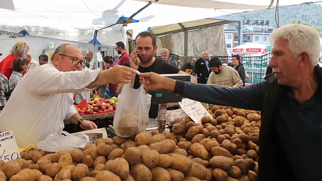 Fethiye Salı Pazarında esnafları ziyaret eden Cumhuriyet Halk Partisi (CHP) Muğla Milletvekili Adayı Mehmet Demir, soğan ve patates satıp, 'Soğan ve Patatesin Kokusunu Özledik' diyerek, fiyatların yüksekliğine dikkat çekti.
