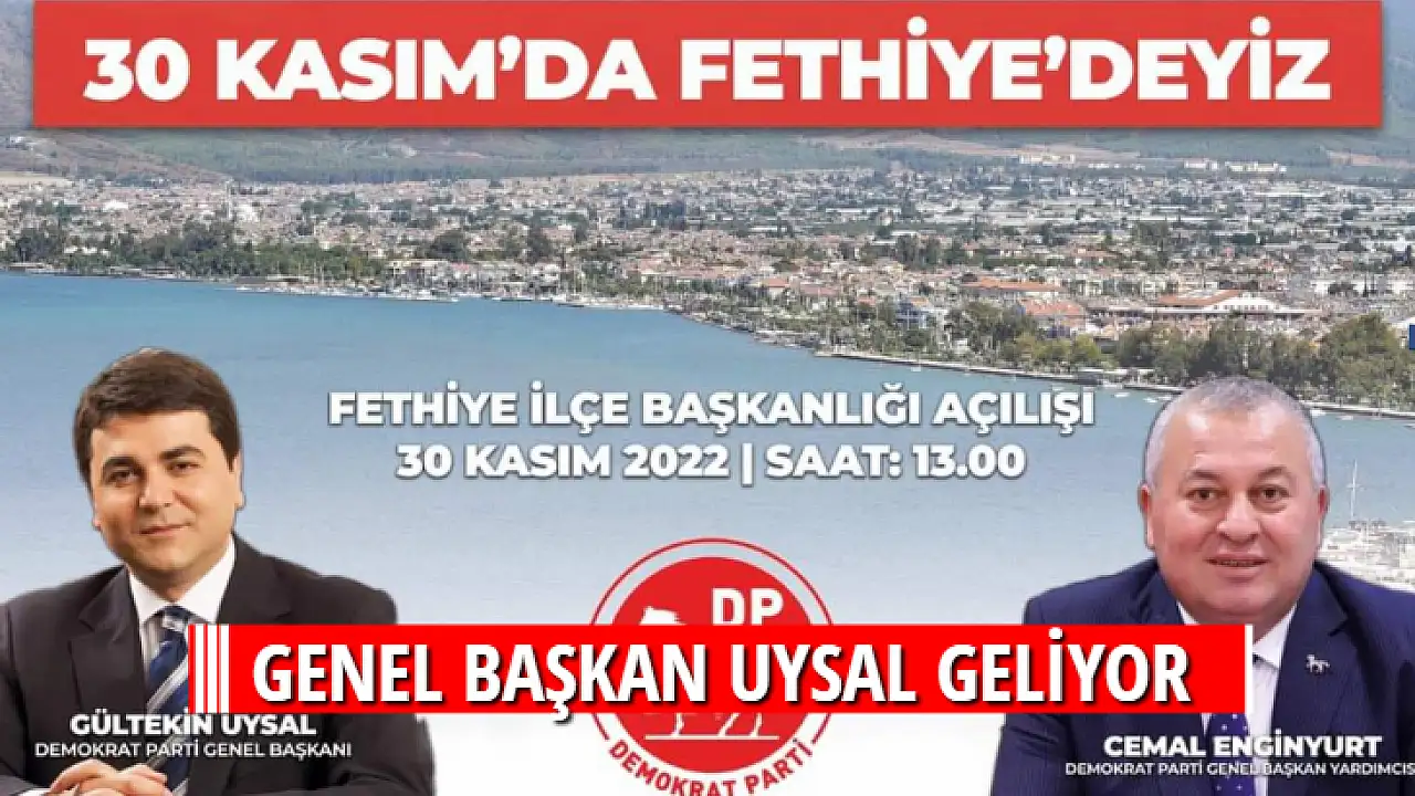 Demokrat Parti Genel Başkanı Gültekin Uysal yarın Fethiye'ye gelecek.