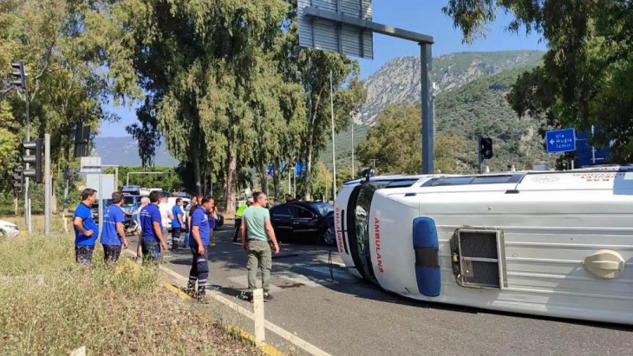 Muğla Gökova kavşağında otomobil ile ambulansın karıştığı kazada şans eseri ölen ve yaralanan olmadı.