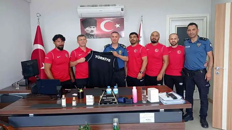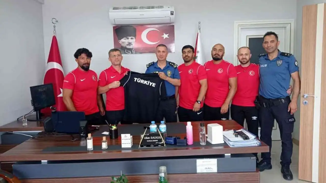 Muğla'nın Köyceğiz ilçesinde Milli Takım güreşçilerinin kamp çalışmaları devam ederken, U-20 Güreş Milli Takım Teknik heyeti Köyceğiz İlçe Emniyet Müdürü Cihan Dalkılıç'ı makamında ziyaret etti.