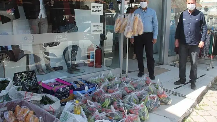 Fethiye'de esnaflık yapan Salih Sağlam, hayırseverlerin bağışladığı gıdaları ihtiyaç sahipleriyle buluşturuyor. Her sabah hayırseverler, Cumhuriyet Mahallesi'ndeki giyim mağazasının önüne sebzeden ekmeğe, kuru gıdadan yağına kadar çeşitli gıda paketlerini, ihtiyaç sahipleri için bağışlıyor.