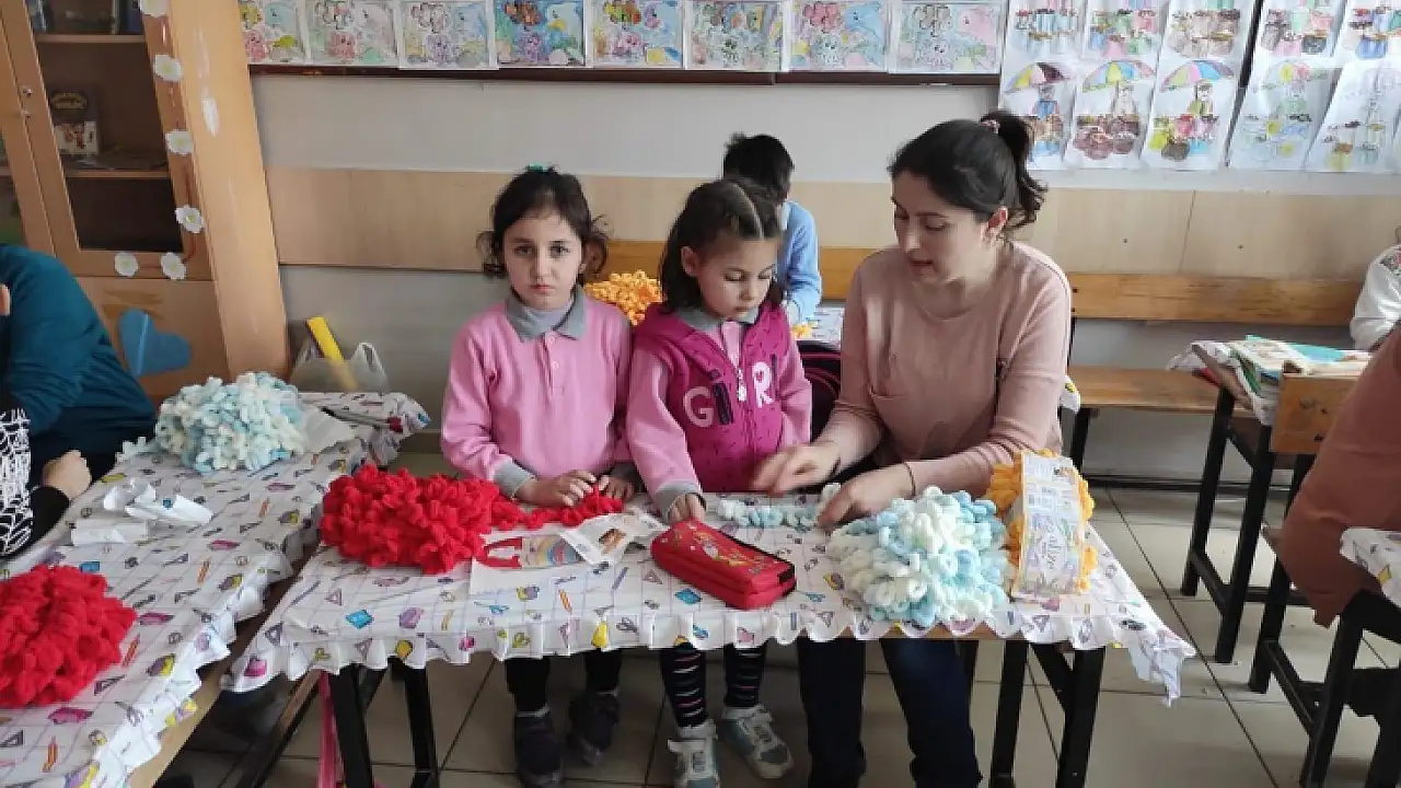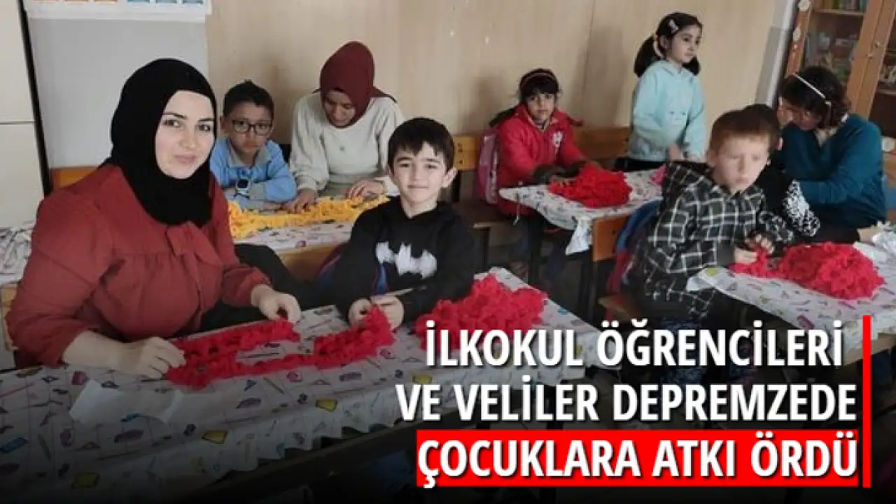 İLKOKUL ÖĞRENCİLERİ VE VELİLER DEPREMZEDE ÇOCUKLARA ATKI ÖRDÜ