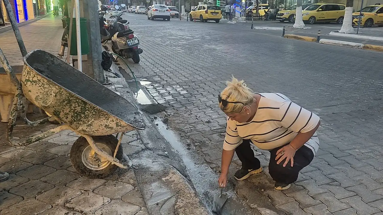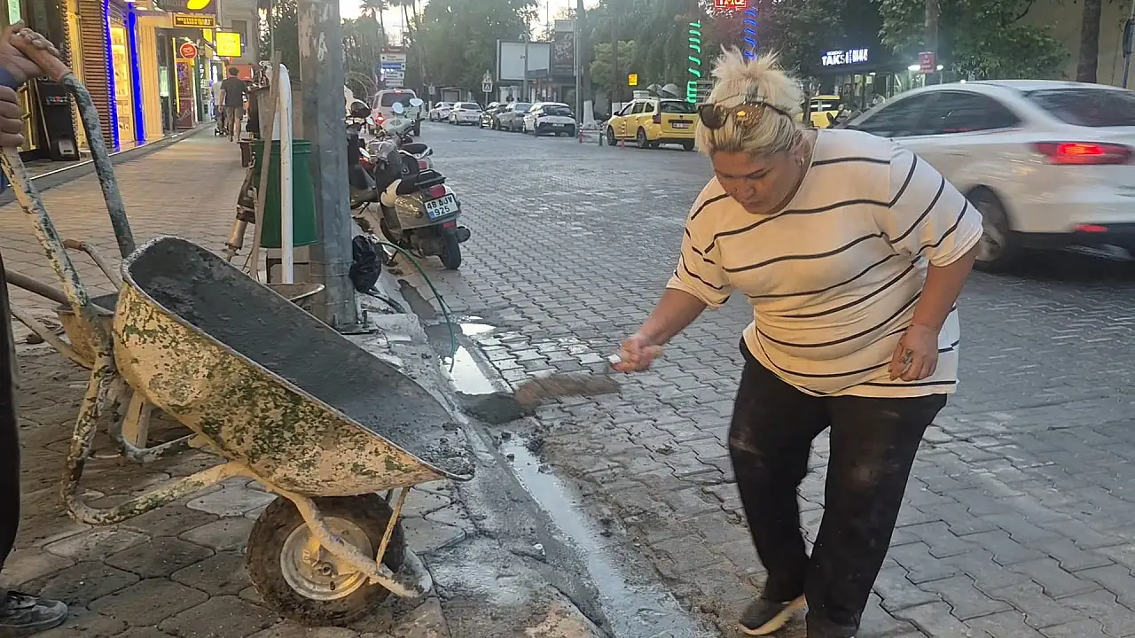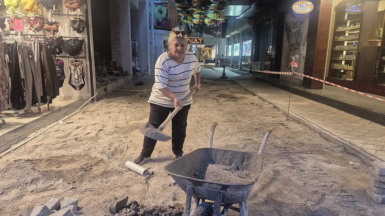 Fethiye ilçesinde yaşayan Fatma Yelmer, damadıyla birlikte inşaat sektöründe çalışarak herkese ilham veriyor. Erkek işi olarak bilinen parke taşı döşemeden demir kaynatmaya, harç karmadan duvar yıkmaya kadar birçok ağır işi üstlenen Yelmer, azmi ve kararlılığıyla kadınlara örnek oluyor.