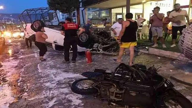 Edinilen bilgiye göre, 19 Mayıs Bulvarı üzerinde seyreden 48 U 3529 plakalı otomobil sürücüsünün direksiyon hakimiyetini kaybetmesi sonucunda kontrolden çıktı, Otomobil, yol kenarında duran 07 YDA 41 plakalı kamyonet ile 09 DS 675 plakalı motosiklete çarptıktan sonra bir işyerine girip, takla atarak durabildi. Çevredekilerin kazayı 112'ye bildirmesi üzerine olay yerine sağlık ve güvenlik güçleri sevk edildi. Milas İtfaiye Grup Amirliği ekipleri tarafından olay yeri güvenliği ve yakıt sızıntısına karşı köpükle müdahale edilerek yangın tedbiri alındı. Yaralanan sürücü olay yerinde yapılan ilk müdahalesinin ardından hastaneye kaldırılarak tedavi altına alındı.
