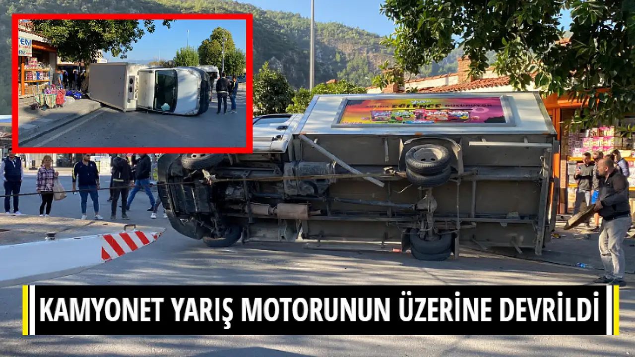 KAMYONET YARIŞ MOTORUNUN ÜZERİNE DEVRİLDİ