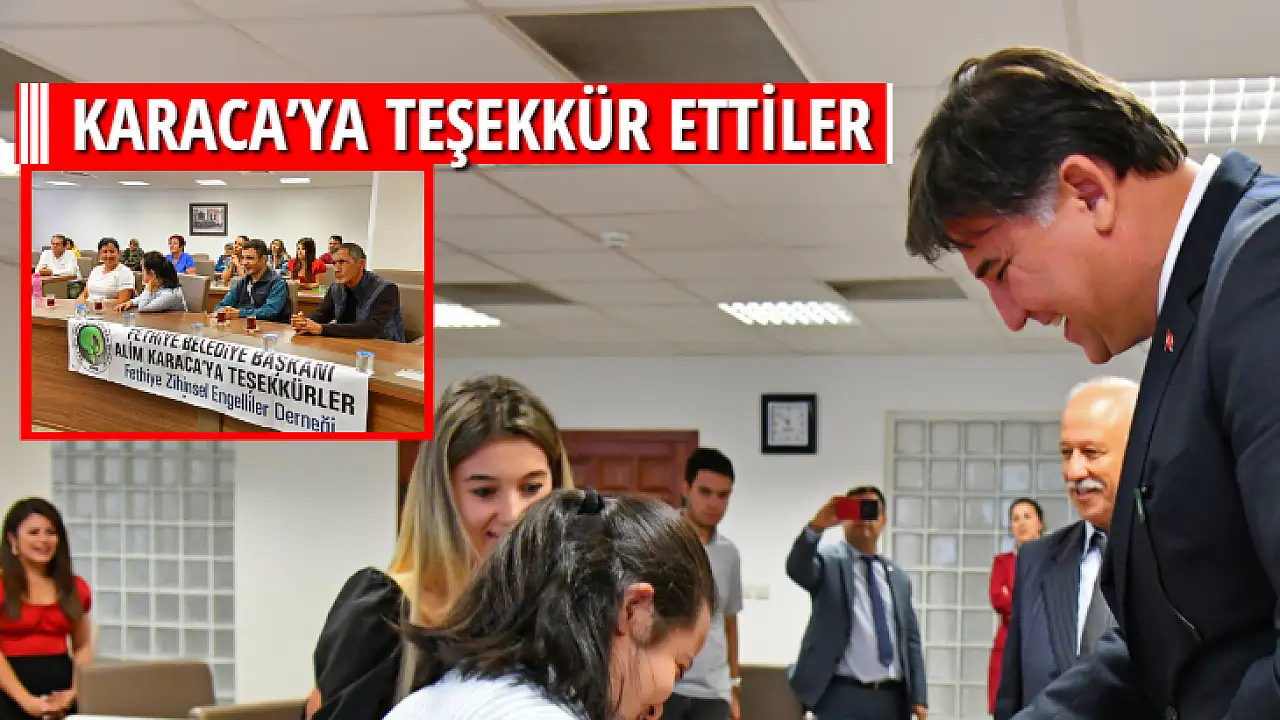 Fethiye Belediyesi Zihinsel Engelliler Derneği Başkanı Necdet Yaman, dernek üyeleri ile birlikte Fethiye Belediye Başkanı Alim Karaca'ya ziyarette bulundu.
