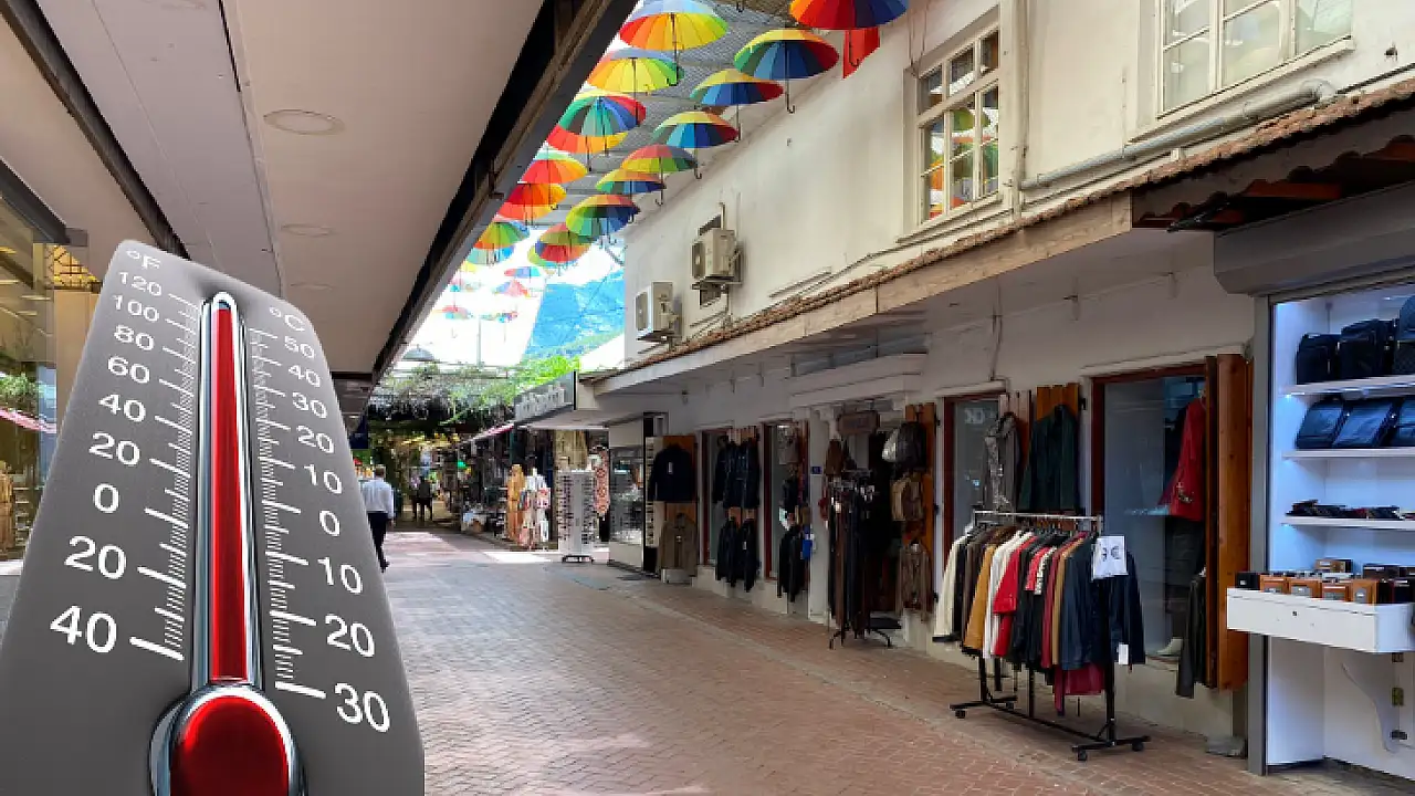 Hava sıcaklıklarının 40 dereceyi bulmasının ardından Fethiye'nin en eski yerleşim yerlerinden birisi olan Paspatur çarşısına rağbetin az olduğu gözlemlendi.