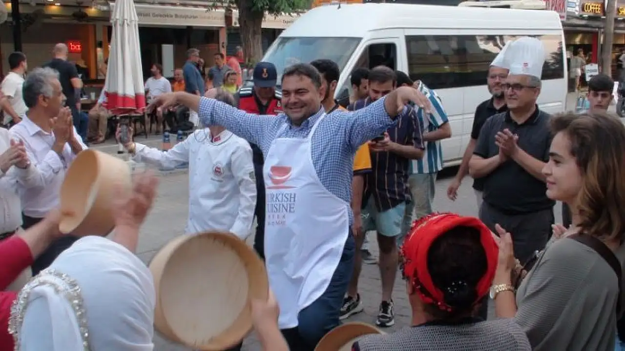 FETOB ve Ölüdeniz Güzelleştirme Derneği’nin ortak düzenlediği programla ‘’Türk Mutfağı haftası’’ başladı. Fethiye Kaymakamı Alper Balcı ve çok sayıda yerli ve yabancı vatandaşlar Ölüdeniz Güzelleştirme Derneği önünde düzenlenen programa katıldı. Kaymakam Balcı etkinlikte zeybek oynadı. Balcı’nın zeybek gösterisi izleyenlerden tam not aldı.