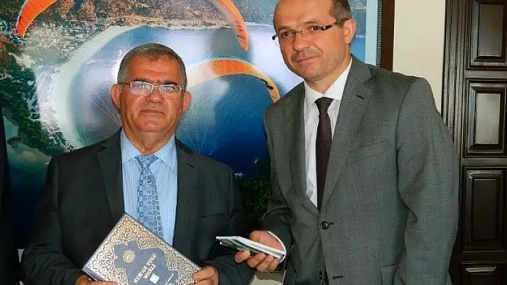 Kutlu Doğum Haftası dolayısıyla Fethiye Müftü Vekili ve İlçe Vaizi Ramazan Yılmaz ile beraberinde Müftülük yetkilileri Fethiye Kaymakamı Ekrem Çalık’ı makamında ziyaret ettiler. Kutlu doğum haftası etkinlikleri hakkında Fethiye Kaymakamı Ekrem Çalık’a etkinlikler hakkında bilgi veren; Fethiye Müftü Vekili ve İlçe Vaizi Ramazan Yılmaz “bu yılın kutlu doğum haftası temasının “Hz. Peygamber ve Güven Toplumu” olduğunu belirtti. Fethiye Müftü Vekili ve İlçe Vaizi Ramazan Yılmaz; Kaymakam Ekrem Çalık’a Kuranı Kerim meali ve kitap hediye etti…