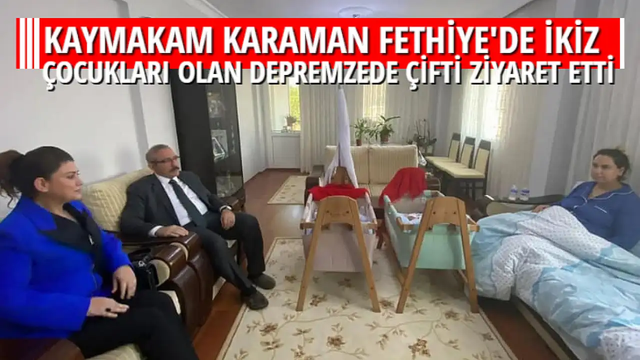 KAYMAKAM KARAMAN FETHİYE'DE İKİZ ÇOCUKLARI OLAN DEPREMZEDE ÇİFTİ ZİYARET ETTİ