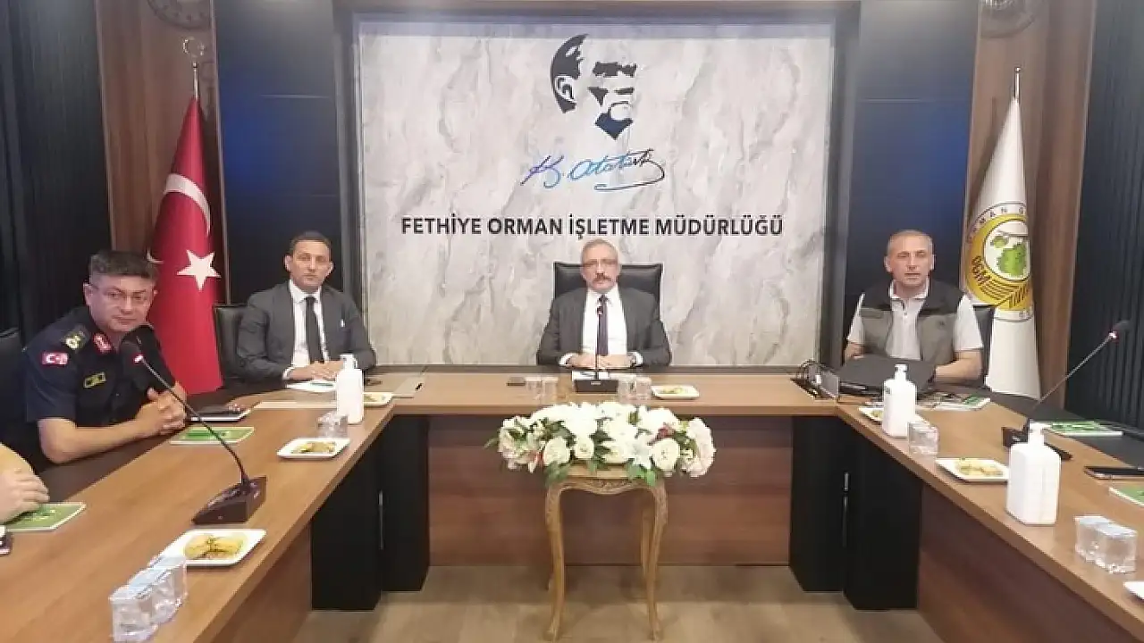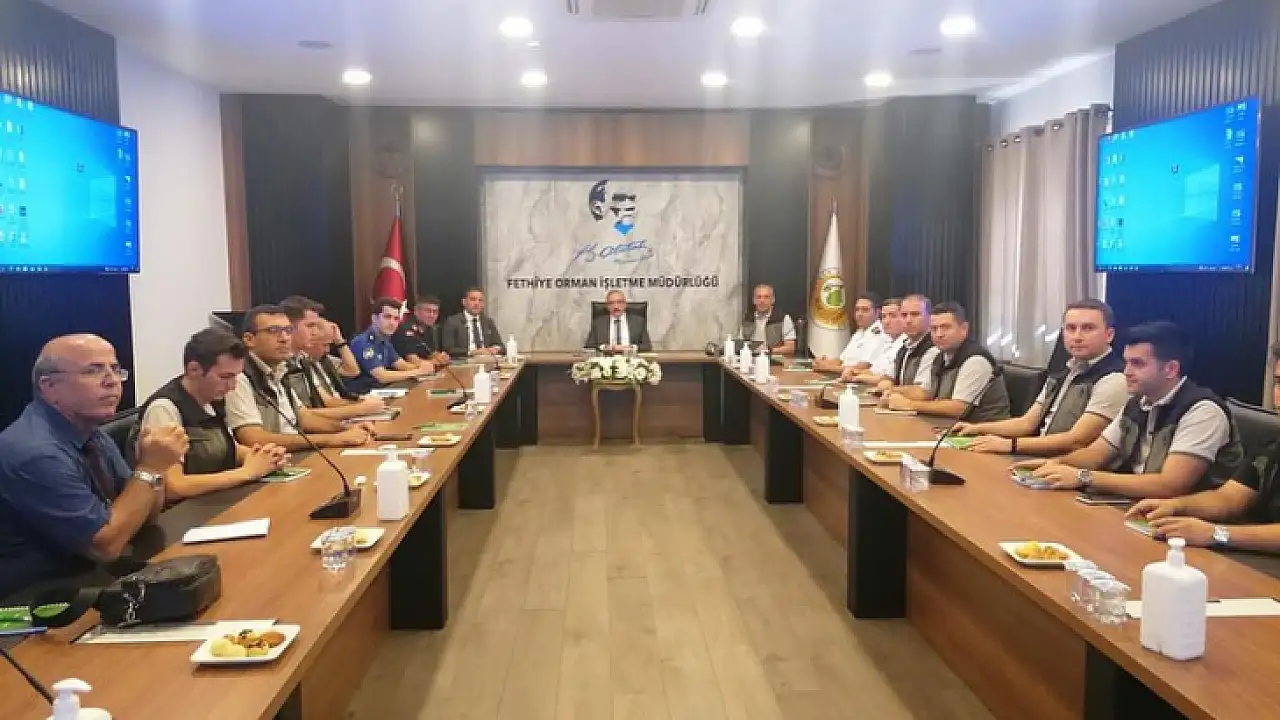 Fethiye Orman İşletme Müdürlüğü toplantı salonunda Fethiye Kaymakamı Yusuf İzzet Karaman ve Fethiye Cumhuriyet Başsavcısı Günşafak Karartı'nın katılımlarıyla yangın konuları esas alınarak toplanıldı.