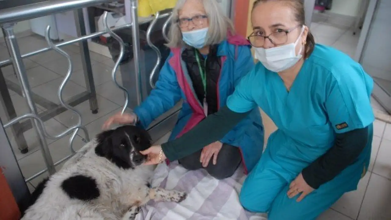 Yaralı köpeğe acil müdahalede bulunan Veteriner Hekim Aynur Ocak, köpeğin ilk geldiğinde şokta olduğunu ve korktuğunu söyleyerek “Bu sabah saat 08:35’te bir ihbarla Gökçen Gökmen Bayram ve Edna Balantine, köpeğimizi getirdi. Burnunda şiddetli kanama mevcuttu, ilk müdahalesini yaptık. Korkuyordu, şoktaydı. Muayenesinde burnunda büyük bir delik olduğunu ve buna bağlı kanamanın olduğunu gözlemledik. Şu an kanama durdu. Durumu gayet iyi, gözetim altında tutuyoruz. Yaranın bulunduğu yerden darbe aldığını tespit ettik. Başka hiçbir yerinde bir şey yok. Birkaç gün içerisinde taburcu ederiz” dedi.