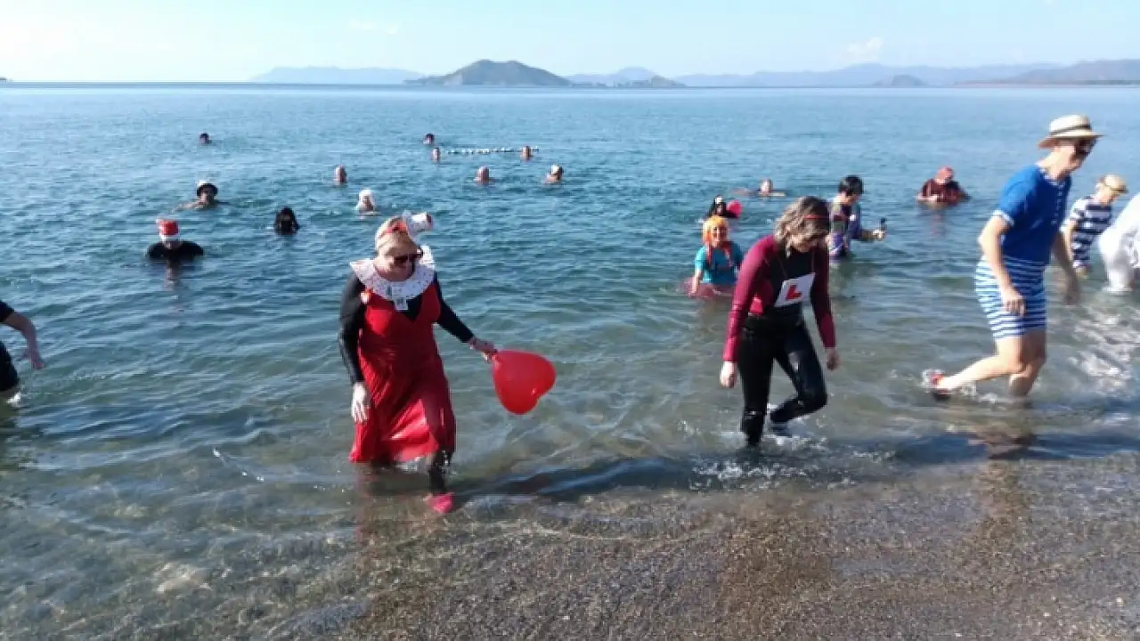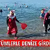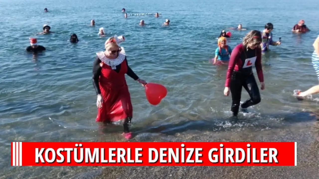 Fethiye'de yaşayan yabancı uyruklu bir grup, yardıma muhtaç çocuklar ve sokak hayvanları yararına gerçekleştirilen etkinlikte kostümlerle denize girdiler.