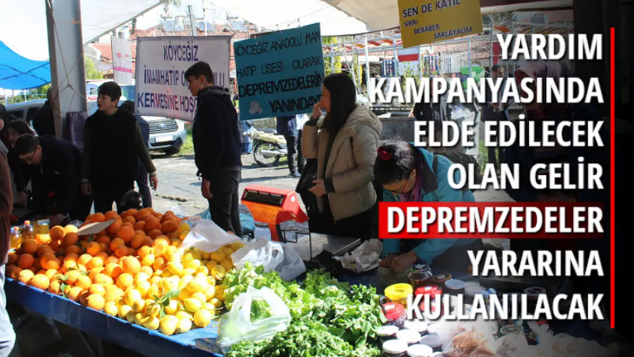 Muğla'nın Köyceğiz ilçesinde İmam Hatip Ortaokulu ve İmam Hatip Lisesi tarafından depremzedeler yararına yardım kampanyası düzenlendi. Yardım kampanyasında elde edilecek olan gelir, depremden etkilenerek Köyceğiz'e gelen vatandaşlar yararına kullanılacak.