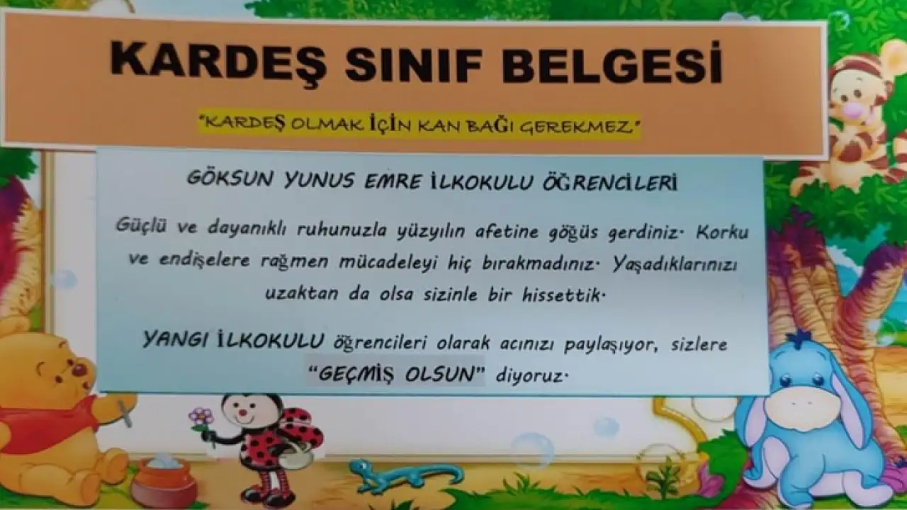 Türkiye’yi yasa boğan ve merkez üssü Kahramanmaraş olan depremler, kentte yaşayan, eğitim veren öğretmenleri ve eğitim alan öğrencileri derinden etkiledi. “Kardeş Olmak İçin Kan Bağı Gerekmez” sloganıyla yola çıkan; Köyceğiz Yangı İlkokulunda görev yapan Öğretmen Neslihan Keskin, üniversiteden arkadaşı Öğretmen Sümeyra İsen Özdemir’i ve öğrencilerini yalnız bırakmadı. Yüzyılın afetinin yaşandığı Kahramanmaraş'ın Göksun ilçesindeki Yunus Emre İlkokulu binası depremde ağır hasar aldığından konteynır sınıflarda eğitime başladılar. Yunus Emre İlkokulu, 3/A sınıf öğretmeni Sümeyra İsen Özdemir, 22 öğrencisi ile depremin izlerini silmek için büyük gayret sarf ediyor. Köyceğiz Yangı İlkokulu 3/A sınıfı öğrencileri Hayat Bilgisi dersine ait " Ülkemizde yaşayan farklı kültürdeki insanların sorunlarına yönelik sosyal sorumluluk projelerine katılır" kazanımına istinaden bir sosyal sorumluluk projesi başlattı. " Kardeş olmak için kan bağı gerekmez" sloganıyla yola çıkan öğrenciler depremzede kardeşleri için iki haftalık hazırlık sürecinin sonunda, ailelerinin de desteği ile kardeş sınıfına; tatil kitabı, su matarası, Köyceğiz lokumu, Köyceğiz balı, Köyceğiz magnetleri ve mektuplarla gönderdikleri hediyeleri Kahramanmaraş'a ulaştı. Kardeşlik Belgesinin de gönderildiği kardeş sınıfa geçmiş olsun dileklerini bildirerek: "Kardeş Olmak İçin Kan Bağı Gerekmez" diyerek duygularını ifade ettiler.