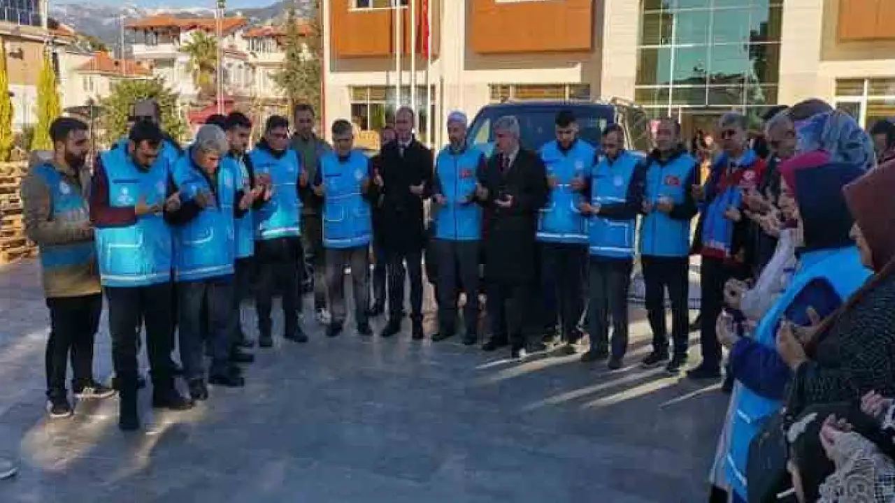 Muğla'nın Köyceğiz ilçe Müftülüğü görevlilerinden gönüllü oluşturulan 11 kişilik yardım ekibi deprem bölgesine gitmek üzere yola çıktı.