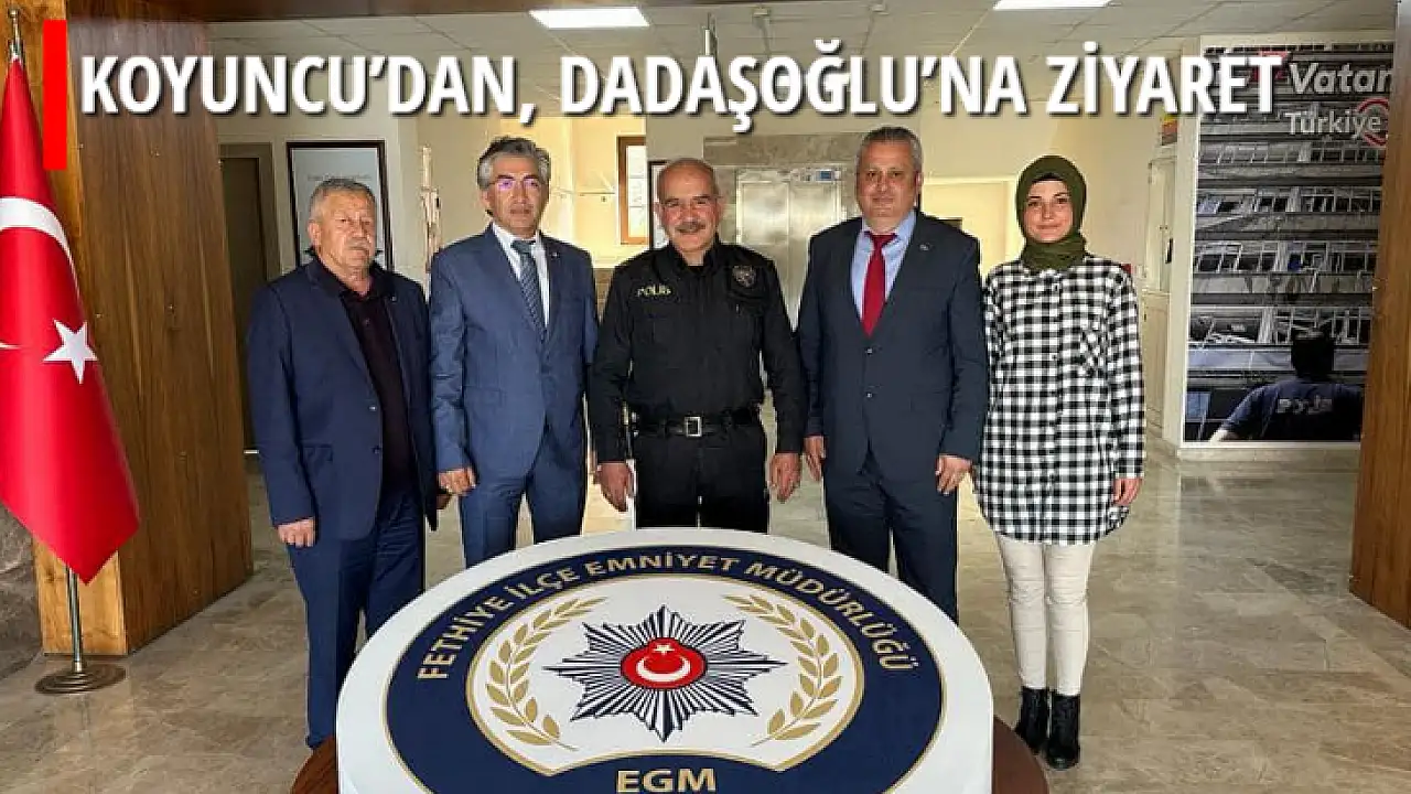 Cumhuriyet Halk Partisi(CHP) İlçe Başkanı Mustafa Koyuncu, beraberindeki heyet ile birlikte Fethiye Emniyet Müdürü Kayhan Dadaşoğlu’na ziyarette bulundu.