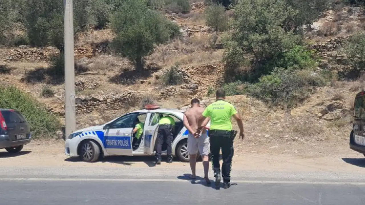Muğla'nın Bodrum ilçesinde yangın çıkardıktan sonra denize giren şahıs, boğulma tehlikesi geçirdi.