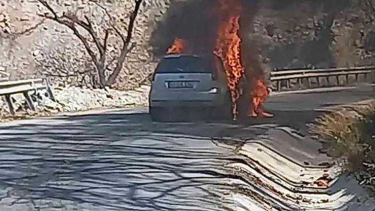 Marmaris İçmeler Mahallesi Asparan yolu üzerinde hareket halindeki araçta çıkan yangında araç kullanılmaz hale geldi.
