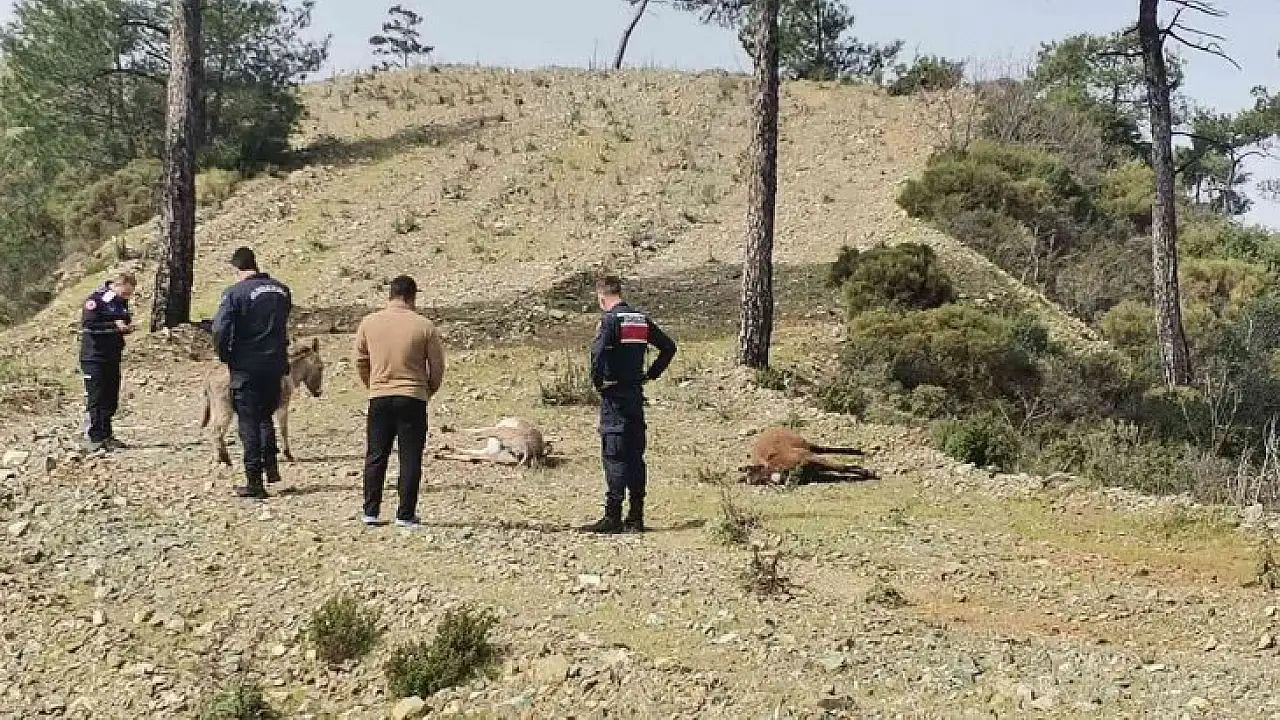 Muğla'nın Marmaris ilçesinde bir arazide iki eşek, tüfekle vurularak öldürülmüş halde bulundu.