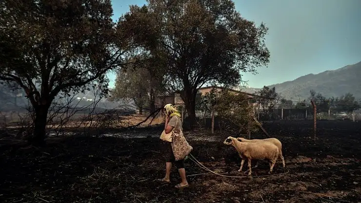 Eşi ormanda yangına müdahale eden Emine Ergün, ipinden tuttuğu koyunları yangından kaçırmaya çalıştı. Askerlerin kendisini ve hayvanları kurtardığını söyleyen Ergün, “Askerler arabaya bindirmeseydi hasar görecektik. Ben de yanıyordum. Beni askerler kurtardı. Hayvanlarımı da askerler kurtardı. 2 hayvanım da kaçtı. Evin durumunu bilmiyorum” dedi. Alevlerin evlere ulaşmasıyla vatandaşlar hayvanlarını alıp kumsala indi. Bazı vatandaşlar tahliye botlarıyla bölgeden uzaklaştı. Hayvanlarını bırakamayanlar kumsalda kaldı.