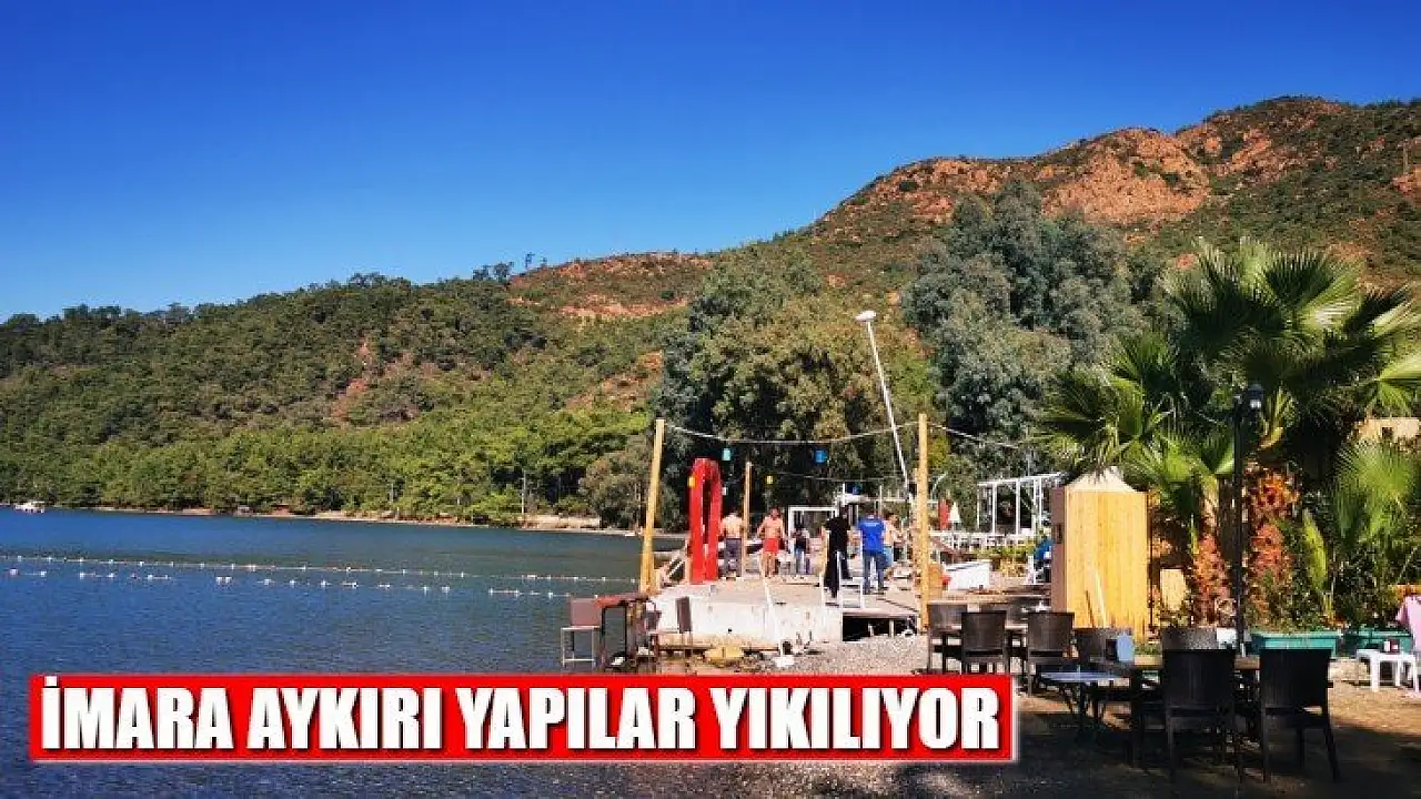 Muğla'nın Marmaris ilçesi Adaağzı Mahallesi Aktaş Mevkii'nde bulunan denize sıfır 5 mekanın işletmecisi imara uygun olmayan yapılarını kendi imkanlarıyla yıkarak uygun hale getiriyor.