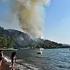 Marmaris’te orman yangınları devam ederken turistler de alevlere rağmen tatillerini sürdürüyor. Alevlerin gölgesinde tatillerine devam eden turistler ilginç manzaralar oluşturdu.